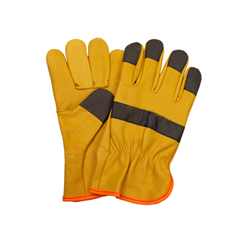 KEY FEATURES Made Of Grain Leather 4 Tips Wing Thumb Reflective Tape on Knuckle Elastic On Back / Orange Colour Tape